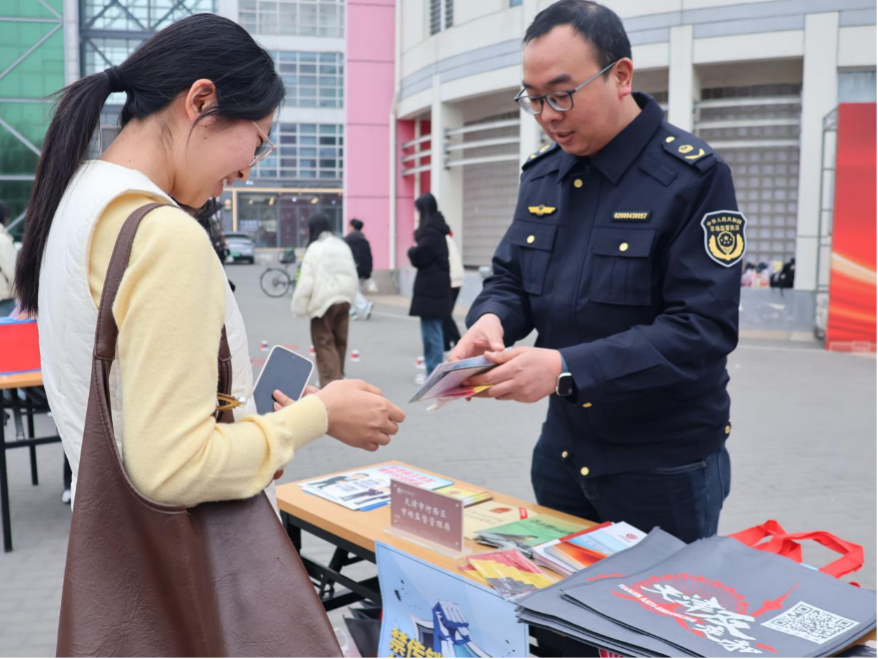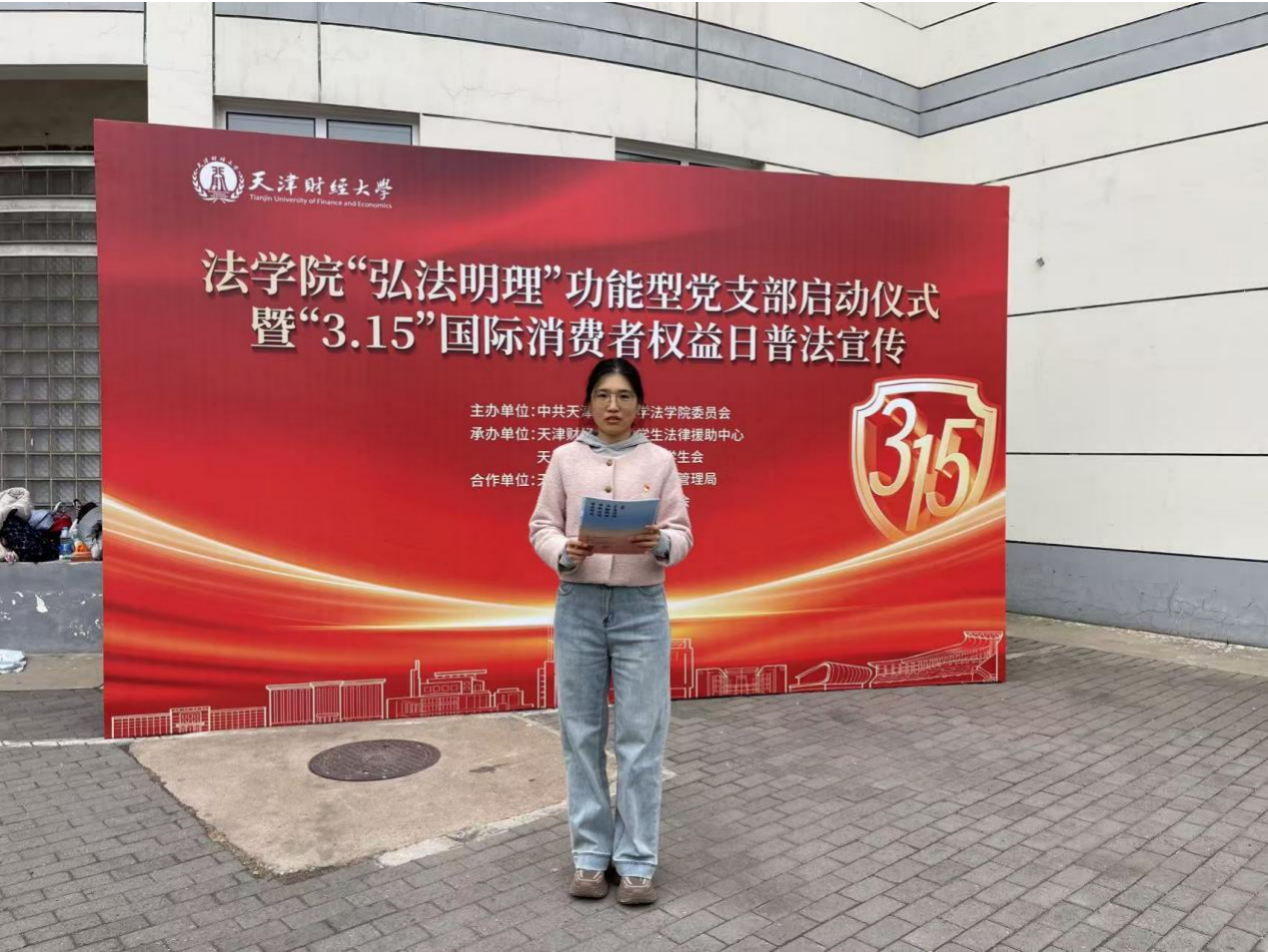 仪式结束后,“弘法明理”功能型党支部组织开展了“3·15”国际消费者权益日普法宣传活动,通过举办校园消费者权益普法宣讲、普法趣味游园活动加强法治宣传教育,与河西区市场监督管理局与区消费者协会开展共建,现场设立法律咨询台,邀请工作人员入校开展现场咨询与答疑,共同就师生关注的消费者权益保护相关法律法规开展宣传并现场答疑解惑。