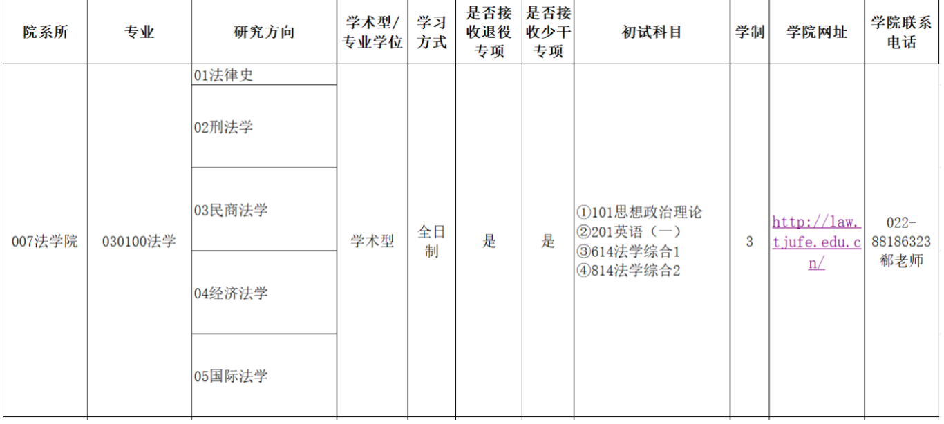 四、2026年法学硕士研究生招生专业(方向)基本情况